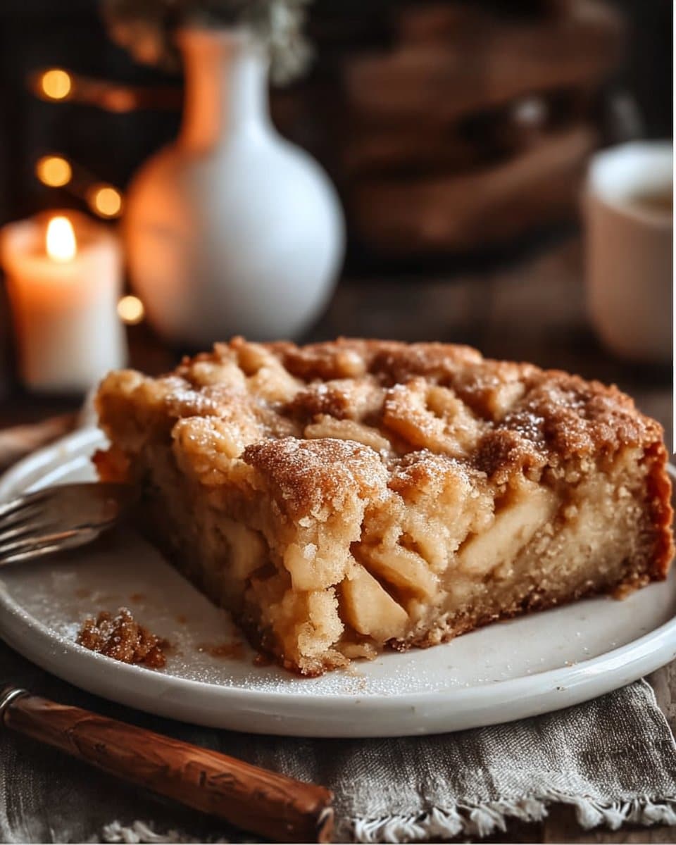 Pair it with: a cup of black coffee, a milky chai, or a small glass of cold milk. For a more formal brunch, add warmed caramel sauce and roasted pecans. The textures play together: the tender apple bits, the carriage of the cake crumb, the coolness of ice cream or cream cheese.