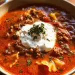 There is comfort in simplicity. This soup brings the layers of lasagna into one pot. It keeps the flavor and sheds the fuss. You get the tomato sweetness, the savory meat, the creamy ricotta, and the pasta textures in a single bowl. It is a small miracle after a long day.