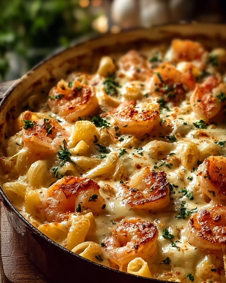 A quick and comforting creamy shrimp scampi pasta bake that’s perfect for weeknight dinners. Rich flavors of garlic, shrimp, and melted cheese combine for a delightful dish.