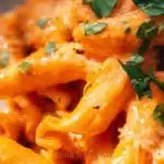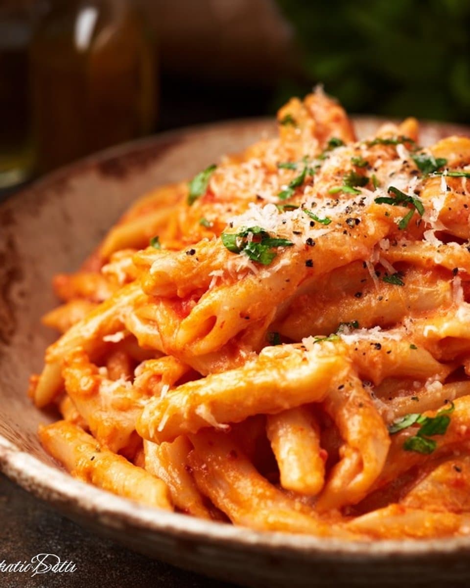 I like to start by letting the tomatoes and garlic simmer together long enough to smell their sweetness. The color deepens from bright red to a soft, cozy orange when cream joins the pan. Meanwhile, the pasta is busy in its pot, bubbling and releasing steam that fogs the kitchen window. Once it’s ready, the noodles slide into the sauce and pick up a glossy sheen that makes everyone reach for a plate.