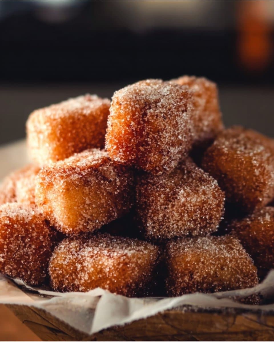 My best trick is to keep the cinnamon sugar in a shallow dish so the bites pick up the coating fast. If you make them ahead, flash-fry them for a minute to refresh the crunch. They may not be perfect a day later, but they still make good company with ice cream or fruit.