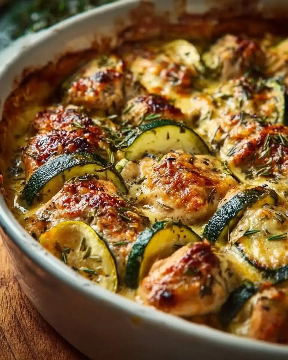 A comforting and simple bake combining juicy chicken and tender zucchini, perfect for busy families.