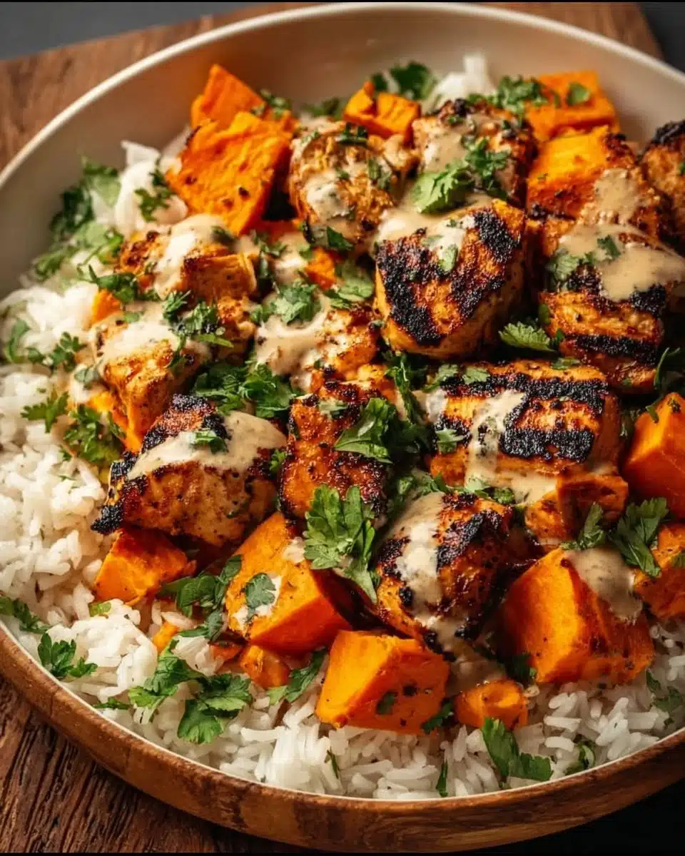 There is something soothing about cooking a simple, honest meal and watching it bring people together. Healthy Chicken & Sweet Potato Rice Bowl is not about perfection. It is about rhythm. It’s about coming home, chopping things into manageable pieces, and letting the oven and the pan do some of the work while you breathe.