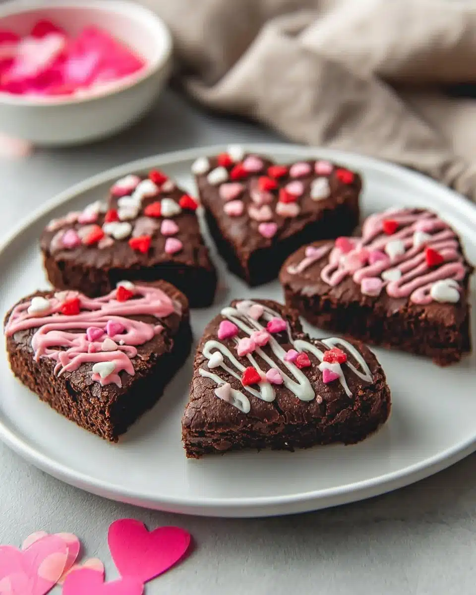 If you want a different heart-shaped approach with a glossy finish and a few decorating ideas, I like the technique shown at Heart Shaped Brownies – Nourish and Fete for inspiration on presentation and toppings. For another home-style version that focuses on deep chocolate flavor and simple steps, take a look at Heart-shaped Brownies – Texanerin Baking.