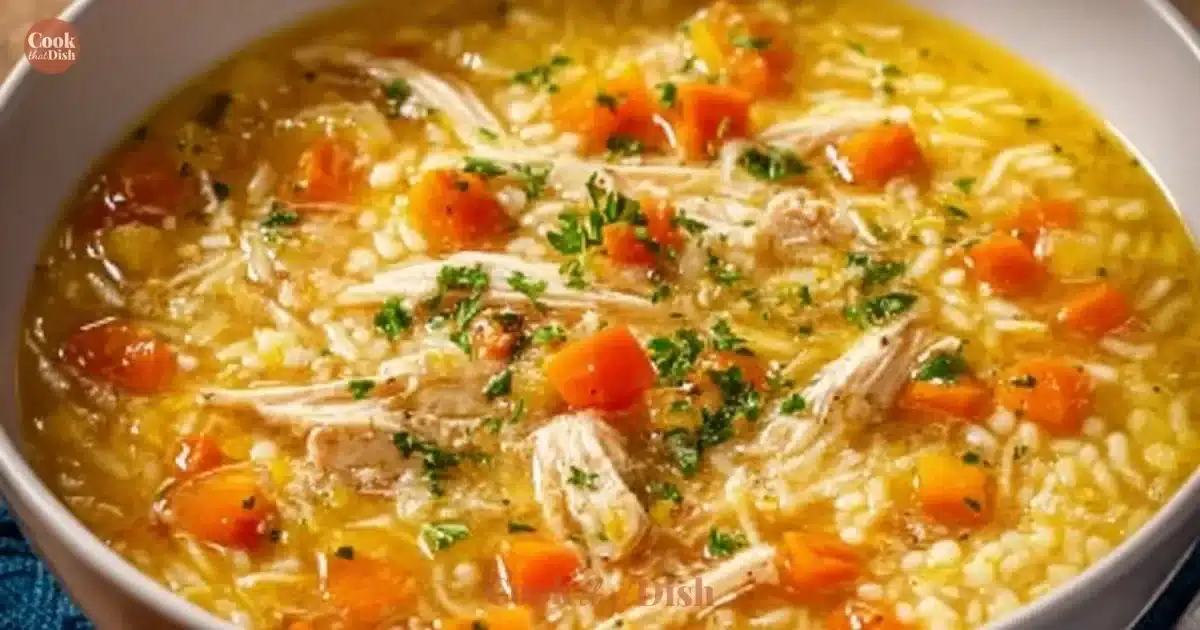A comforting soup filled with chicken, vegetables, and tiny pasta, perfect for warming hearts and hands on chilly evenings.