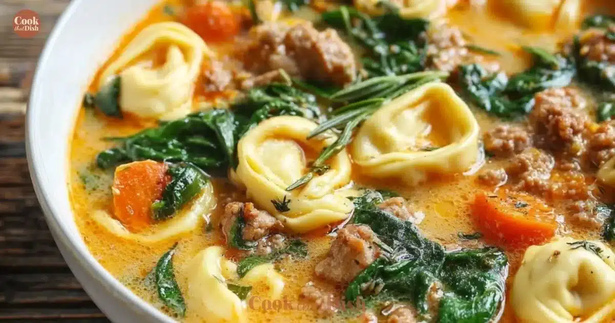 A heartwarming and flavorful sausage tortellini soup with sweet potatoes and spinach, perfect for chilly autumn days.