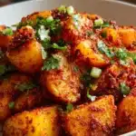 That sizzle is the heartbeat of this recipe. It tells you everything you need to know: heat, time, and a touch of courage with the spices. Meanwhile, the lime brightens the whole thing right at the end. Once it’s ready, we pile the potatoes on a big plate, pass a bowl of cilantro, and everyone grabs a fork. From there, dinner becomes a little celebration. Before I share the practical secrets, you might like a quick read on pairing ideas that inspired this dish earlier in my week: crispy roasted potatoes helped me refine the crisp and texture I wanted.
