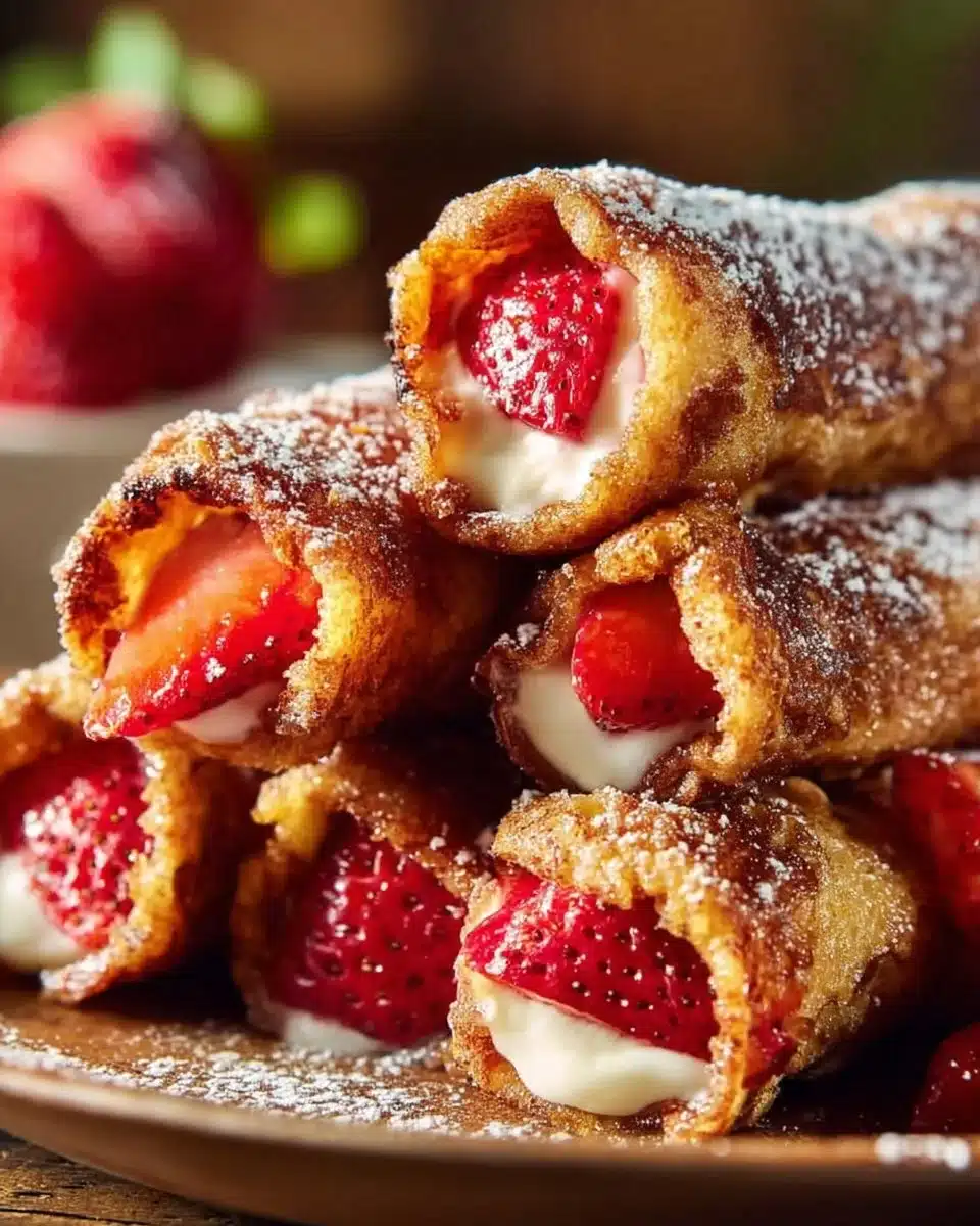 Delicious and easy-to-make French toast roll-ups filled with cream cheese and fresh strawberries, perfect for busy mornings and family brunches.