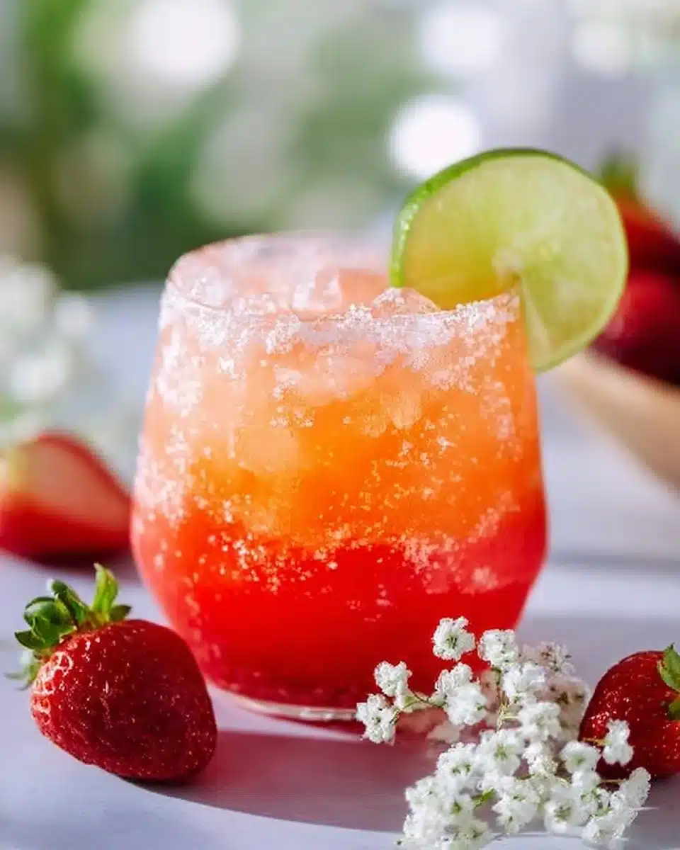 A refreshing, fruity mocktail that combines strawberries, lime, and orange juice for a vibrant family-friendly drink.