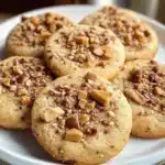 Before we list the ingredients, picture the kitchen as the dough comes together. The butter should be soft enough to press with your thumb. When you cream it with powdered sugar, a pale, cloud-like mixture forms. It looks almost like frosting. Add the vanilla and the dough relaxes, smelling sweet and warm. As you fold in the flour and salt, the texture shifts to a slightly crumbly, pliable mass that holds the toffee pieces like tiny treasures. The toffee melts at the edges when baked, creating little patches of caramel that glint against the cookie’s pale surface.