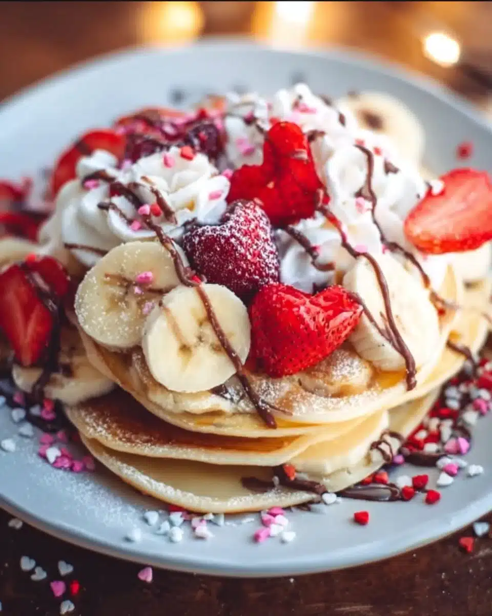 If you want a bright, shareable twist on pancakes, this idea pairs well with other playful pancake projects, like the charming Pancake Nachos idea that inspired many of my plating tricks Pancake Nachos at xoxoBella. For a small, seasonal version that leans into Valentine colors and mini pancakes, this recipe style complements the lovely assembly in a guide I enjoy Valentine Mini-Pancake Stacks.