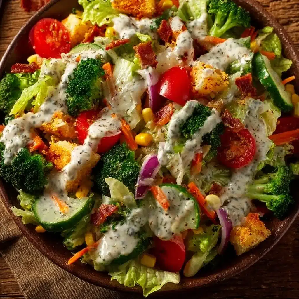 A vibrant and crunchy salad that combines mixed greens, fresh vegetables, and a creamy dressing, perfect for busy weeknights and potlucks.